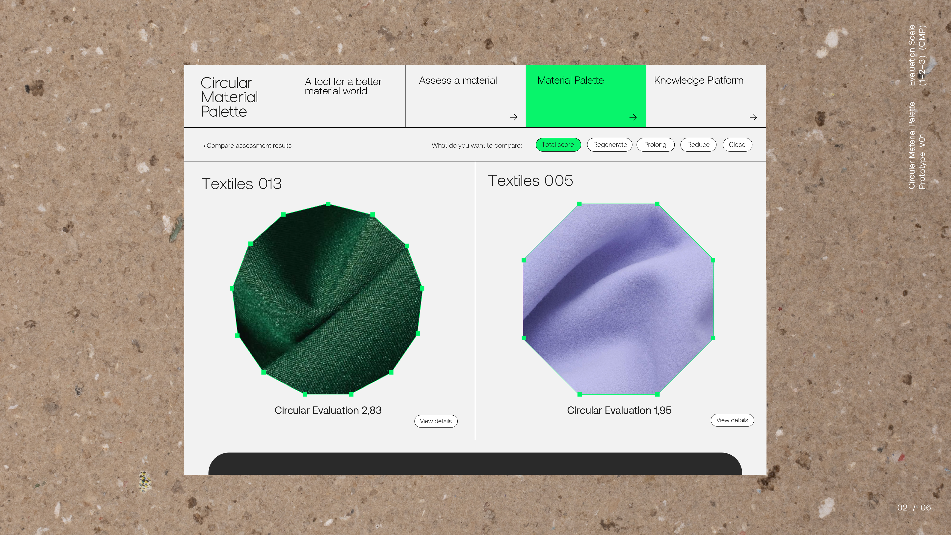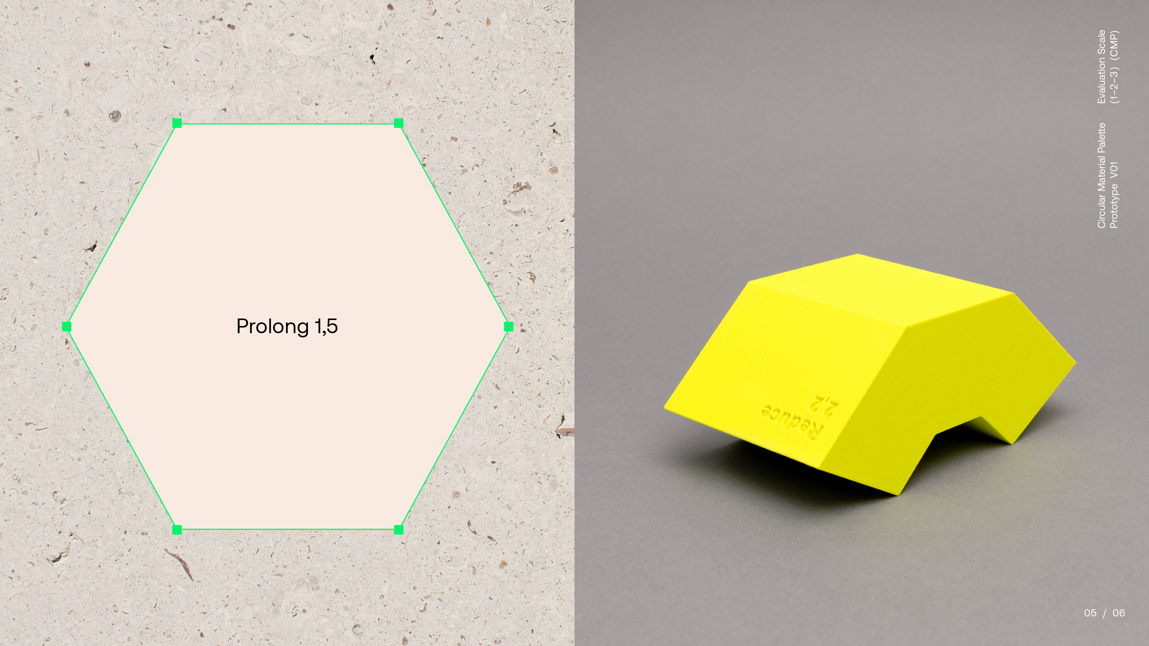 Cirkulära material utgör en viktig pusselbit för att ställa om mot ett mer hållbart samhälle. Ämnet är komplext. Med en enkel idé som förvandlar forskningsdata till ett designorienterat verktyg ges både inspiration och kunskap till producenter, beställare och kreatörer. Ju rundare form, desto mer cirkulärt är materialet.