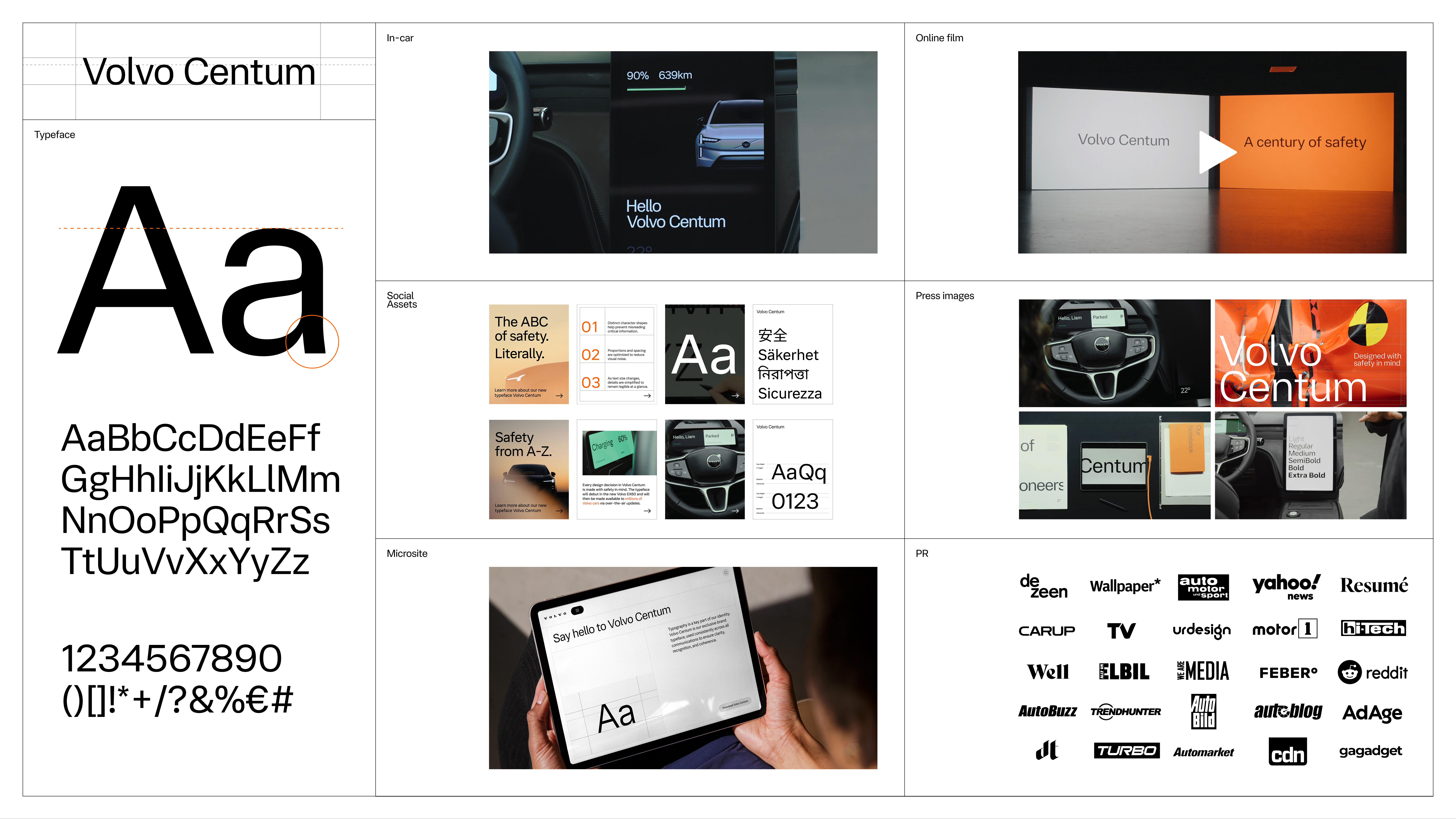 I snart 100 år har Volvo satt säkerhet i centrum. I samband med att den visuella identiteten uppdaterades skulle även ett nytt typsnitt utvecklas. Vår idé var att göra det med säkerhet som högsta prioritet – precis som vi bygger våra bilar. Och målet var att skapa typsnittet för bilens UX/UI i första hand, det fick styra alla beslut. Hur läsbart är det? Går det tillräckligt snabbt att avkoda och tyda? Hur skalar det? Är det lika enkelt att ta till sig i små och stora grader? Hur beter sig typsnittet på olika skärmar? Hur kan vi ta bort och förenkla så att användarupplevelsen alltid främjar säkerhet?
