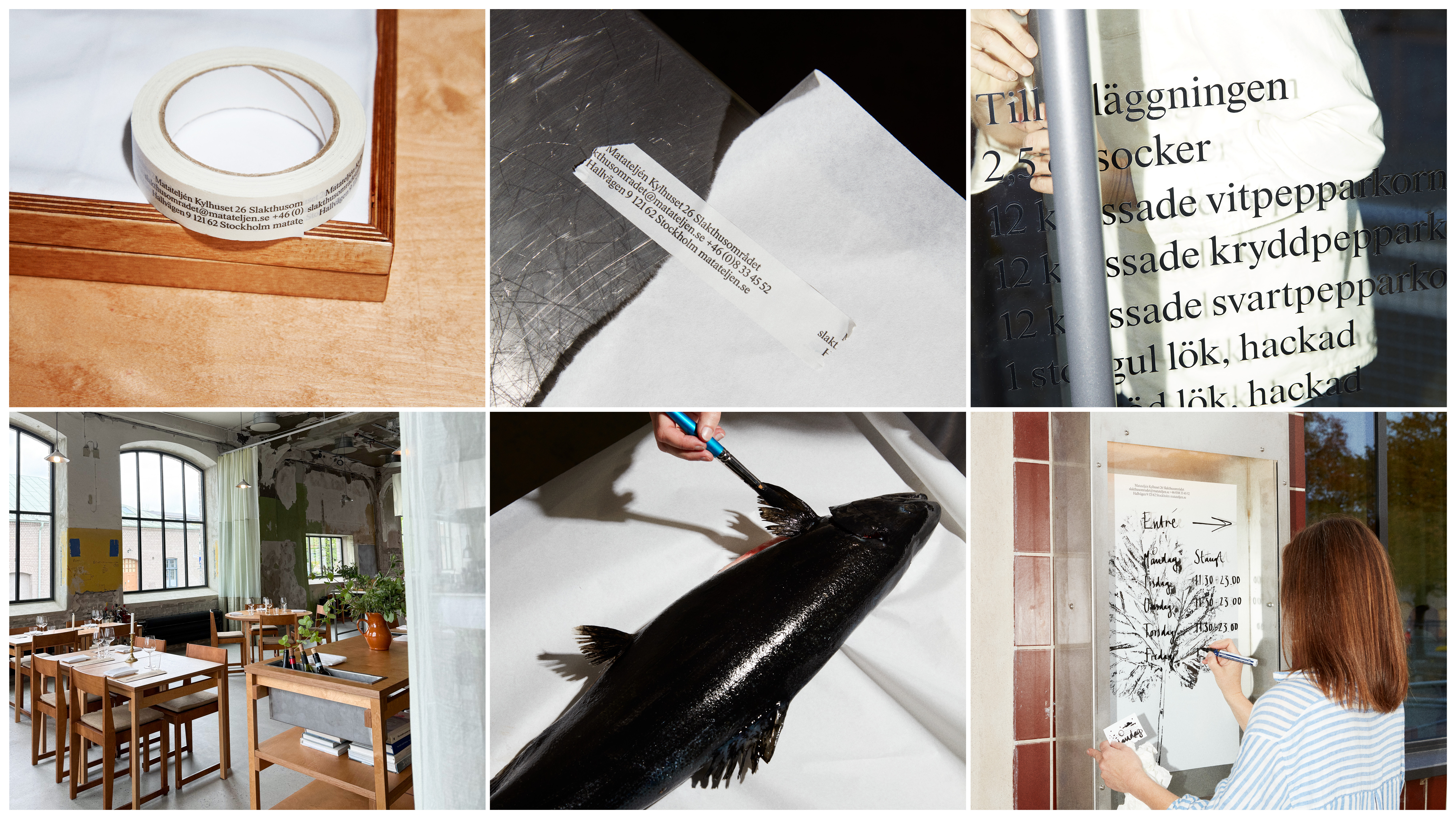 På Matateljén i Slakthusområdet har tekniken fått nytt liv. Här är det inte troféer som förevigas, utan det som faktiskt hamnar på tallriken. Fiskar, grönsaker och styckdetaljer blir grafiskt språk. När menyn förändras gör även bilderna det. Det visuella uttrycket växer i takt med säsongerna.