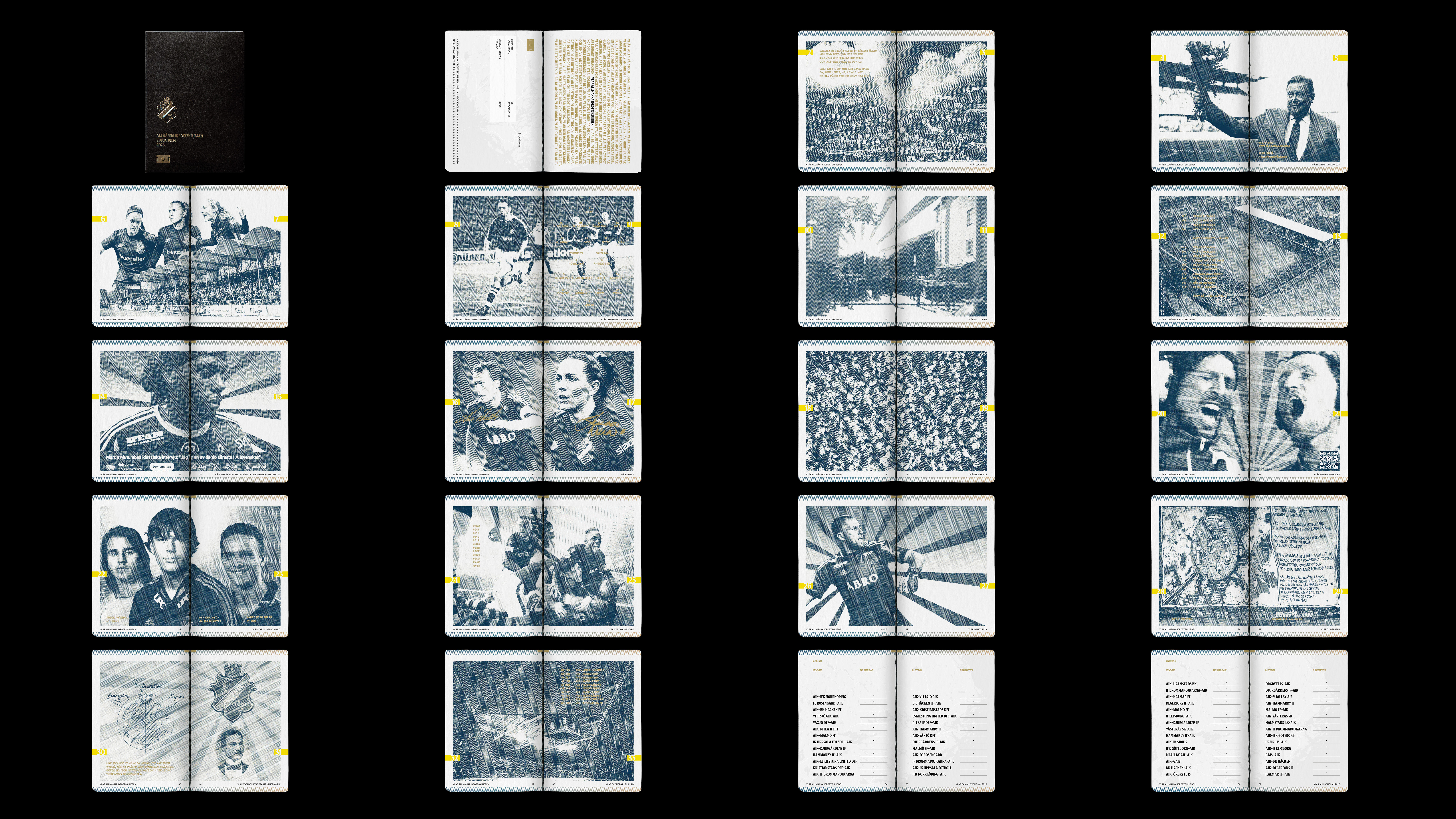 AIK:are lever i en svartgul värld och i denna värld ryms allt som betyder något för klubbens supportrar. Inför kampanjen ställde vi därför frågan: Vad betyder AIK för dig? Via en digital insamling strömmade tusentals svar in, fyllda med berättelser, minnen och symboler. Ur materialet kurerades 32 nedslag som samlades i The Black Passport: från Lennart Johansson och de tolv SM-gulden till kulturella höjdpunkter som Martin Mutumbas ironiska förklaring till varför han är en av ligans sämsta spelare.
