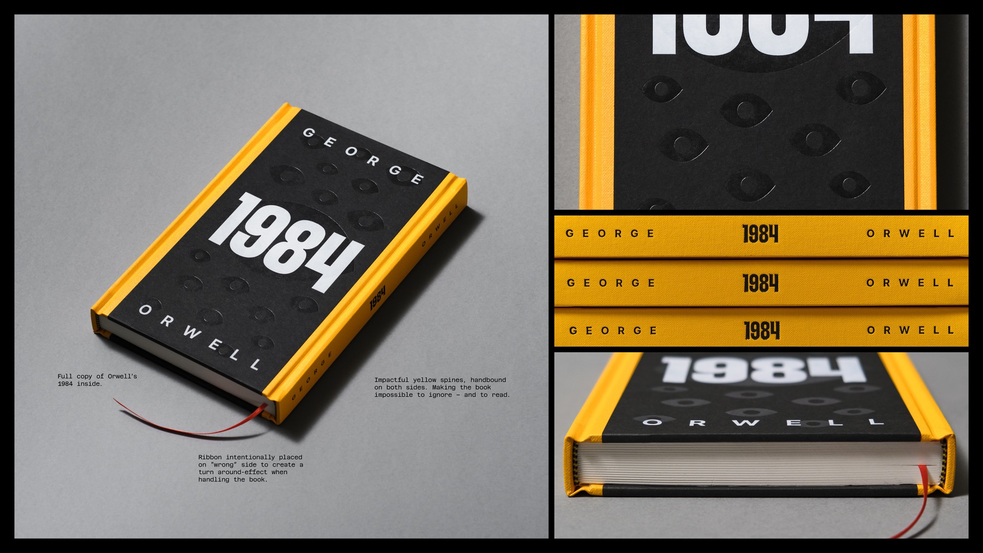 Bokens inbundna sidor innehåller den riktiga boken 1984 av George Orwell. Ett nytt omslag designades och boken bands sedan om för hand av Leonard Gustafssons Bokbinderi i Stockholm, känt för sitt högkvalitativa hantverk och samarbete med Nobelstiftelsen.